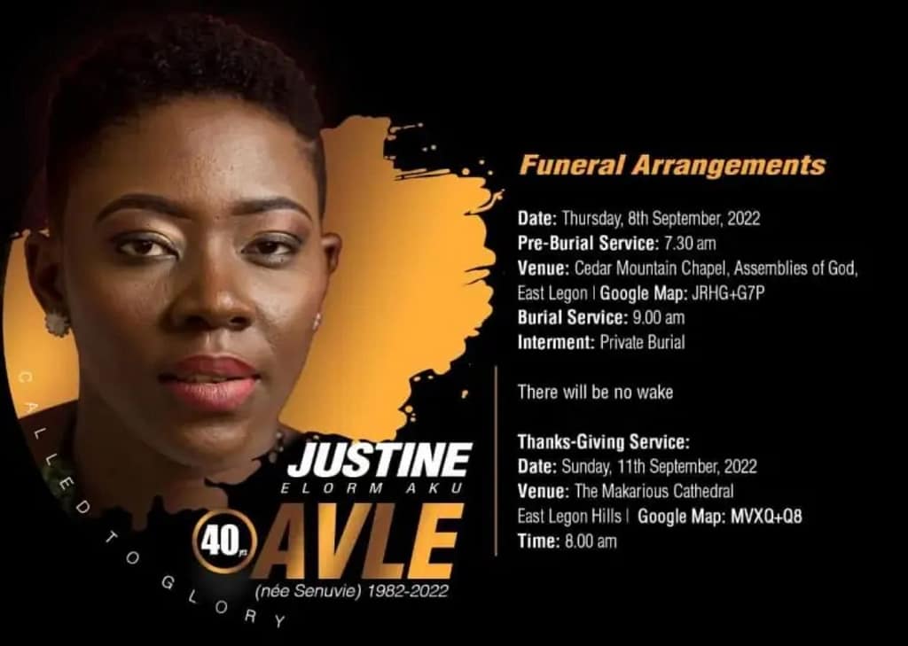 Mrs Justine Alve, wife of celebrated media personality, Bernard Alve of Citi FM/TV burial has been slated for Thursday, September 8, 2022.