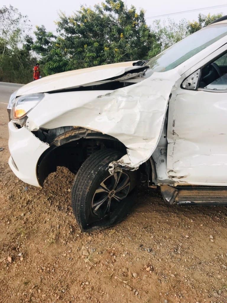 According to DO2 Anthony Kwesi Rhule, the Apam District Fire Service Commander, the accident happened when the driver of the Nissan pickup made an illegal U-turn on the highway, cutting directly into the path of the approaching bus.