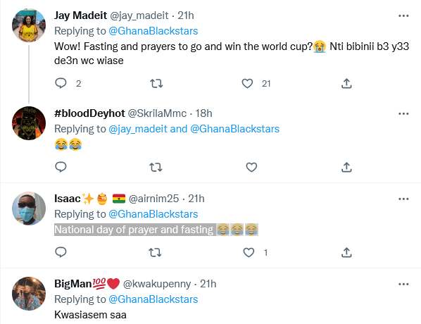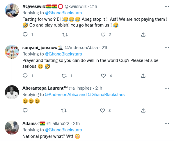 Ghanaians are slamming the GFA for taking such an initiative. According to them, it will be a waste of fasting and praying for Black Stars to perform better at the FIFA World cup in Qatar next month.
