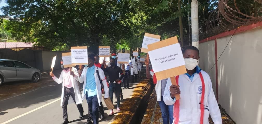 In a bid to press home their demands, they have picketed at the Ministry of Health. According to the group, there have been delays in processes by the Ministry of Health to ensure that they are posted to health centres across the country.